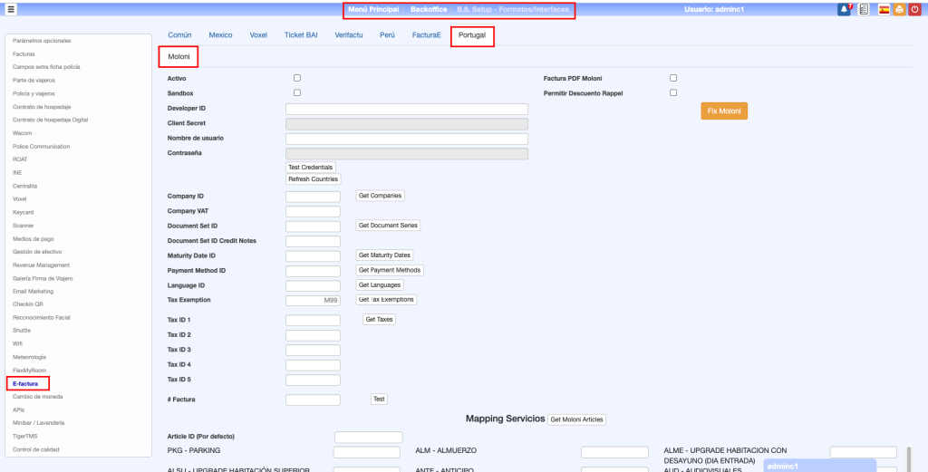 La comunicación de la facturación a la Hacianda de Portugal se realizará a través de la aplicación Moloni. Para la configuración: