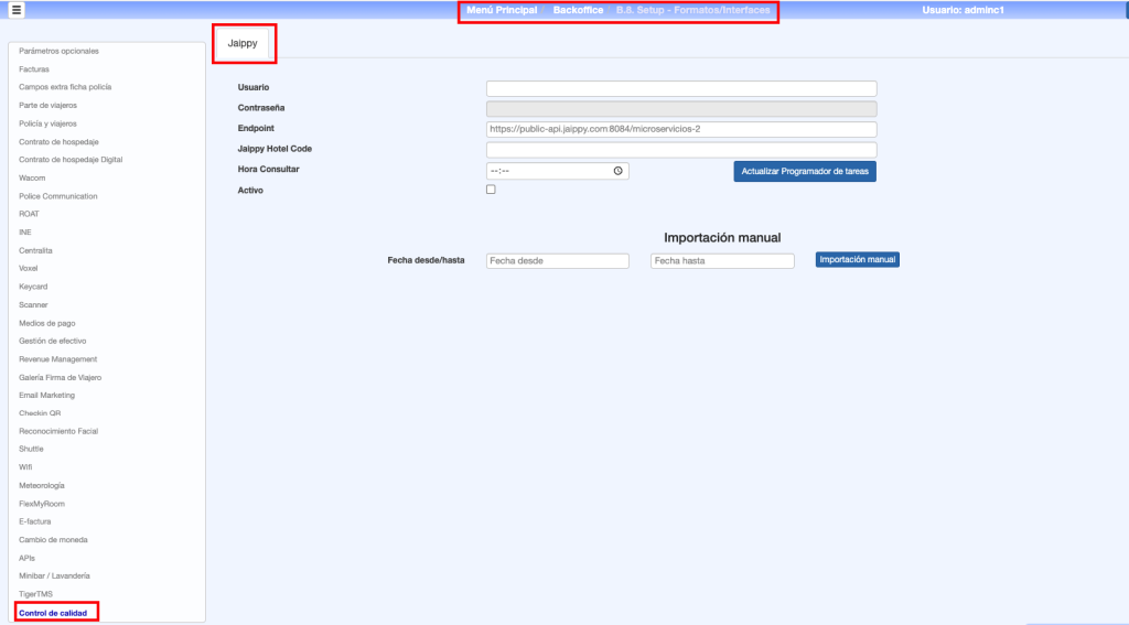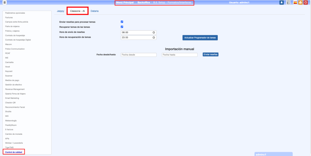 • Importación manual: Permite hacer una descarga manual entre fechas de reseñas desde Jaippy.