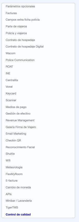 Esta interface tiene una configuración complementaria para el Control de calidad.