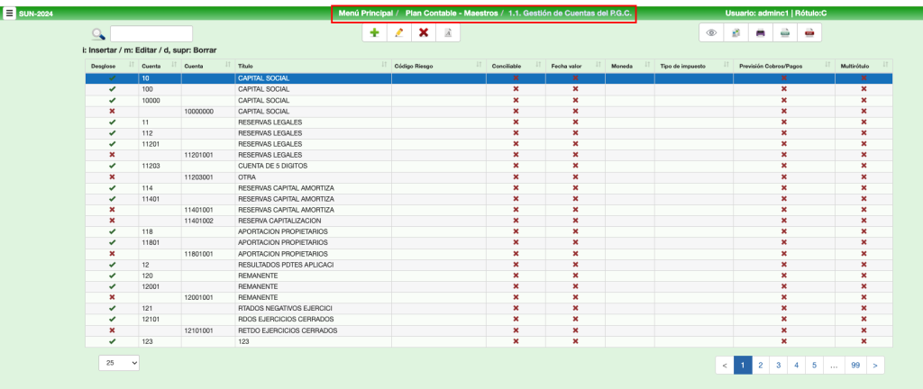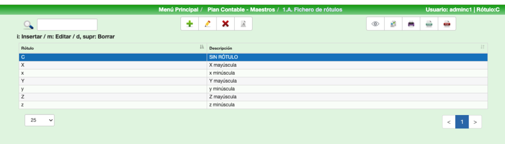 - Plan General Contable (Siempre se asume por defecto como RÓTULO “C”)