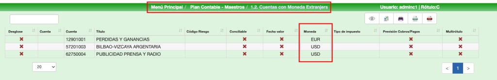 Nos indica aquellas cuentas que tienen moneda extranjera