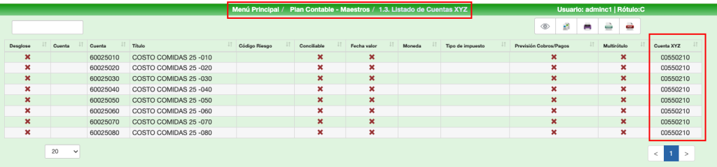 - Multirótulo: Se relaciona con el C.A.D. (Código Analítico Departamental – USALI). Es una manera de añadir otra característica o ampliar descripción en los asientos. P.e., si compramos cerveza contra una cuenta 600 pero los barriles van a los distintos bares que serían los rótulos.