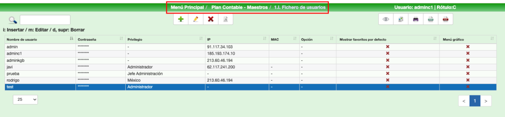 - Privilegio: Definimos el nivel de acceso a menús según los roles del apartado B.7. Setup – General – Privilegios.