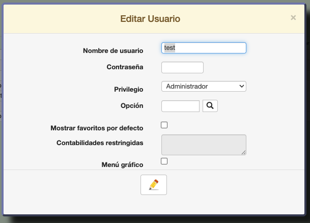 - Contabilidades restringidas: Se pueden seleccionar las contabilidades a las que el usuario puede acceder.
