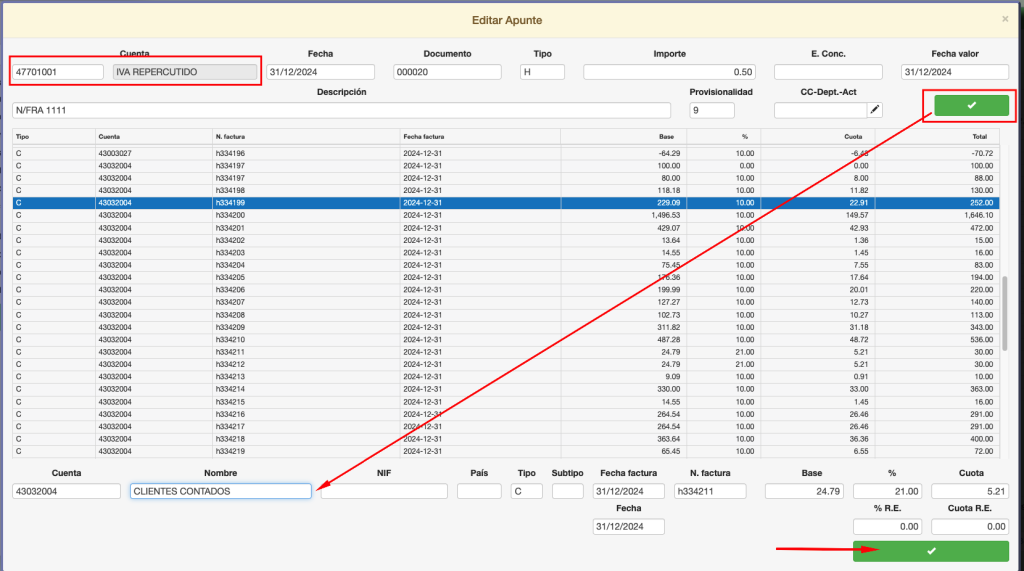 Cuando el movimiento que hemos modificado es de IVA, nos permite a su vez modificar dicho registro de IVA.