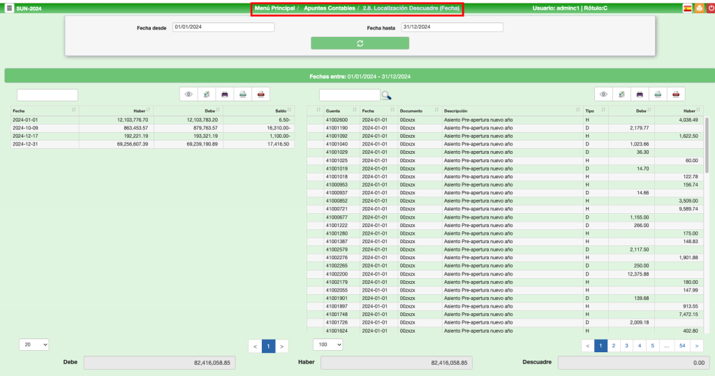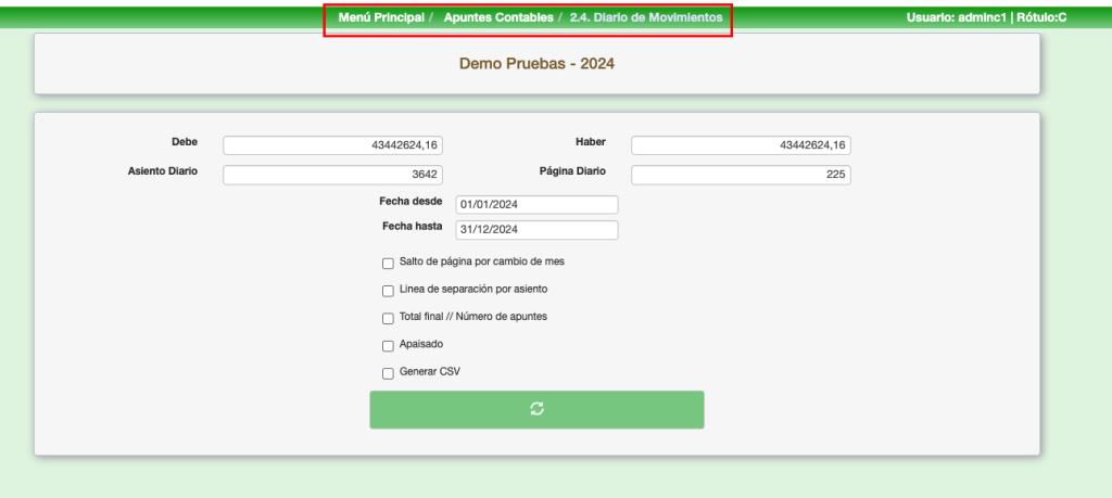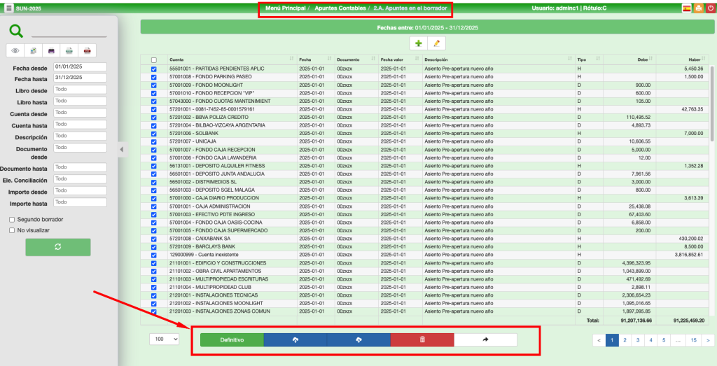 1.3. Visualización de Diario de Movimientos: Se pueden modificar ABSOLUTAMENTE TODOS o CUALQUIER CAMPO, de los movimientos, para acceder a los movimientos podemos utilizar las diferentes herramientas de localización que el sistema nos proporciona.