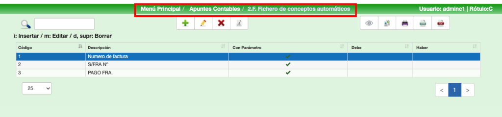• Concepto: pondrá por defecto dicho concepto. Si está en blanco asume el concepto anterior.