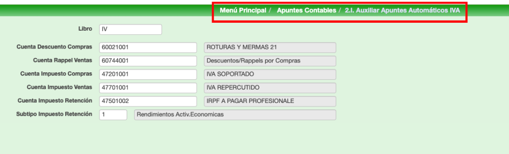 • Libro del Documento: el asiento empezará por ese LIBRO. Si está en blanco tomará el LIBRO anterior.