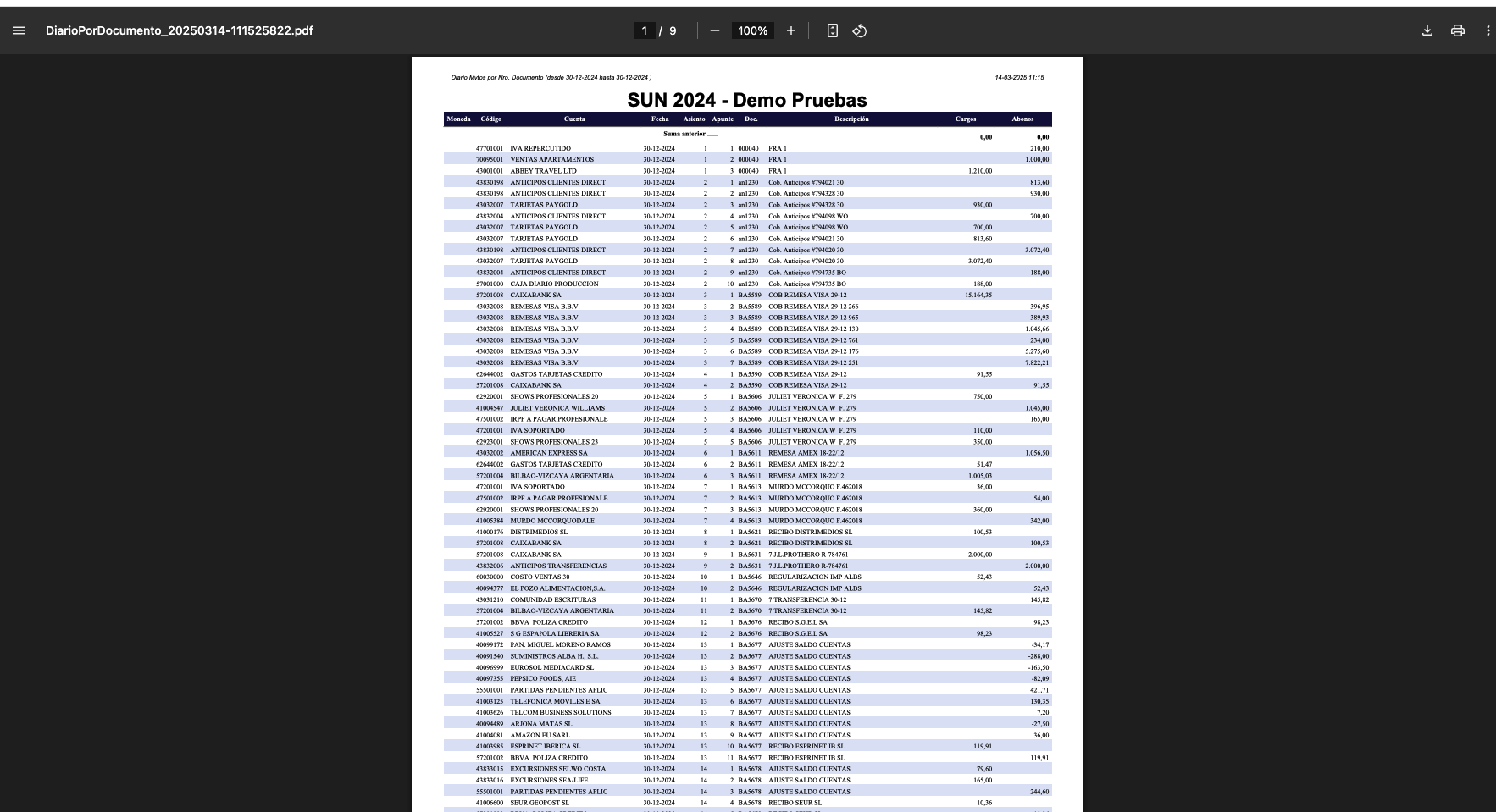 Este “DIARIO” genera un PDF que se ordena por Número de Documento y no por Fecha.