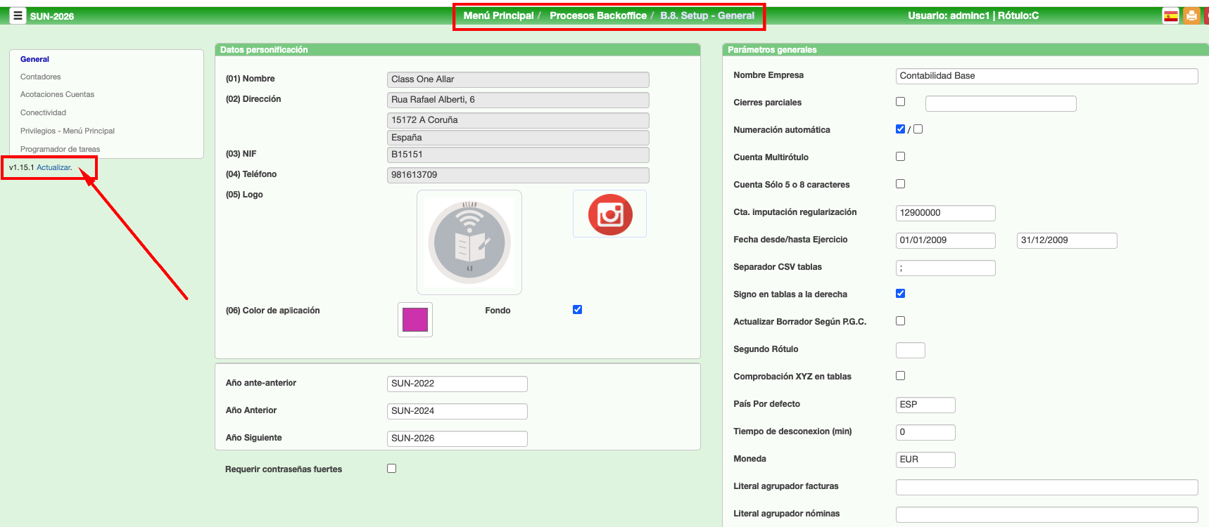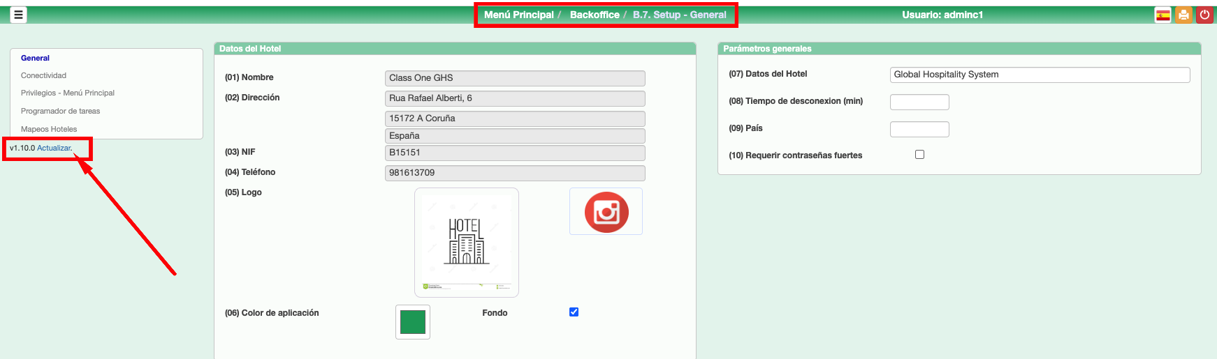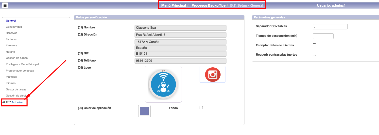 En todas las aplicaciones se encuentra en la opción B.7. Setup – General, justo debajo de la lista de opciones de configuración. En Allar está en la opción B.8. Setup – General