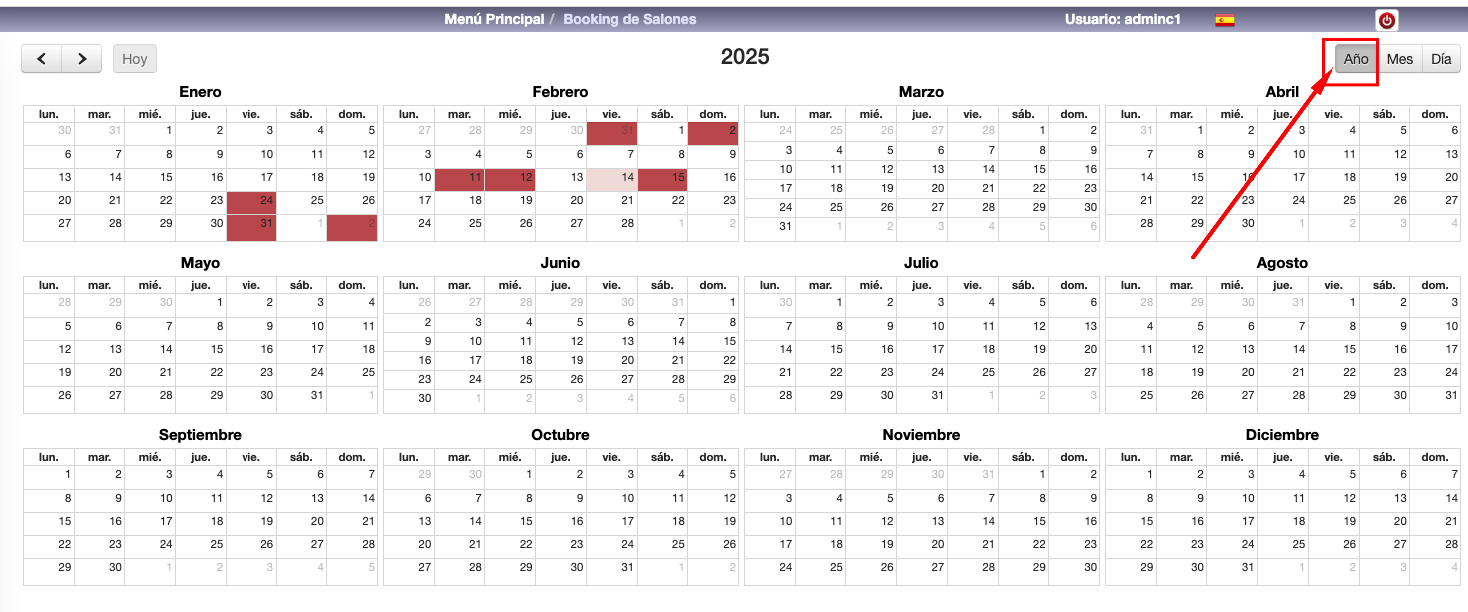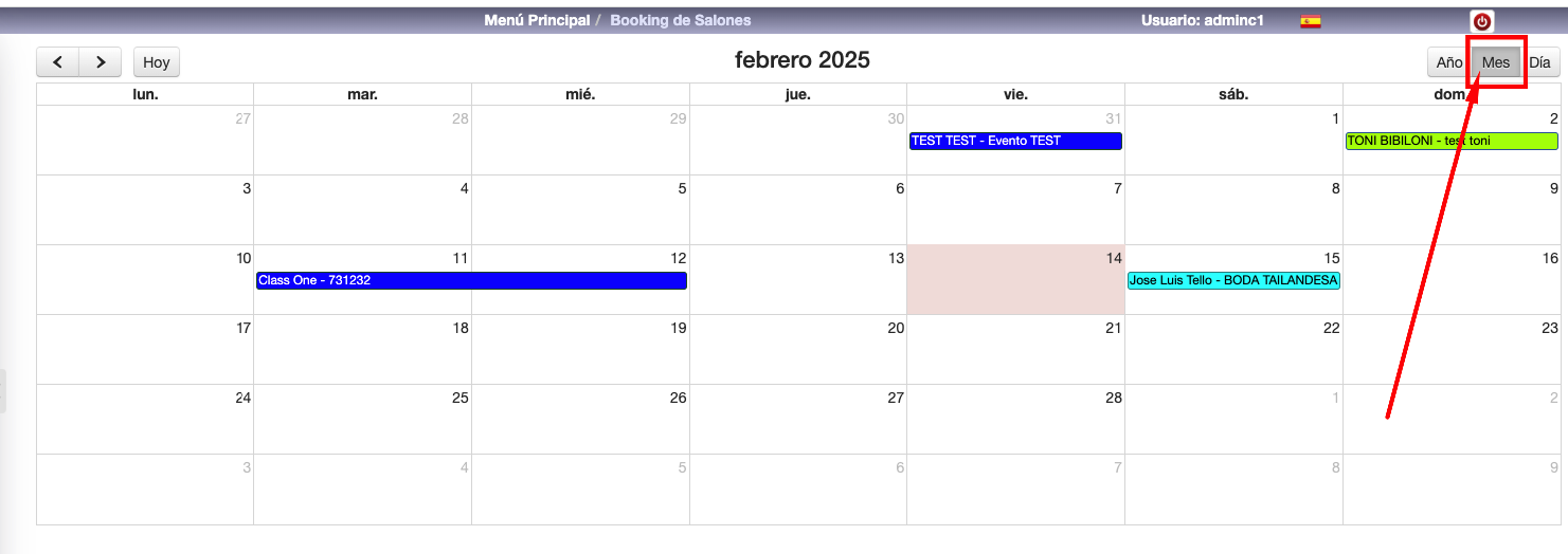 Con el puntero sobre el área del planning de los salones, se puede hacer zoom con la rueda del ratón.