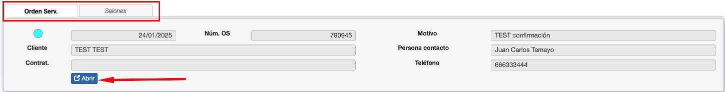 Haciendo click sobre las diferentes OS/BEO, se obtendrán detalles de la misma en la parte inferior de la pantalla. Incluyendo un botón para abrirlas en otra ventana del navegador.