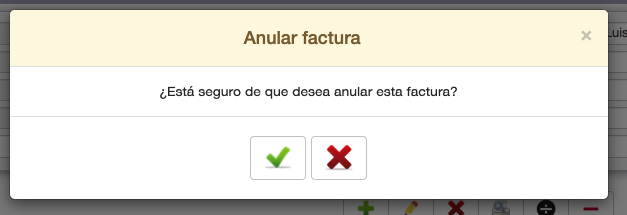 • Anular: para anular la factura. Hace una factura de abono (todos los cargos en negativo).