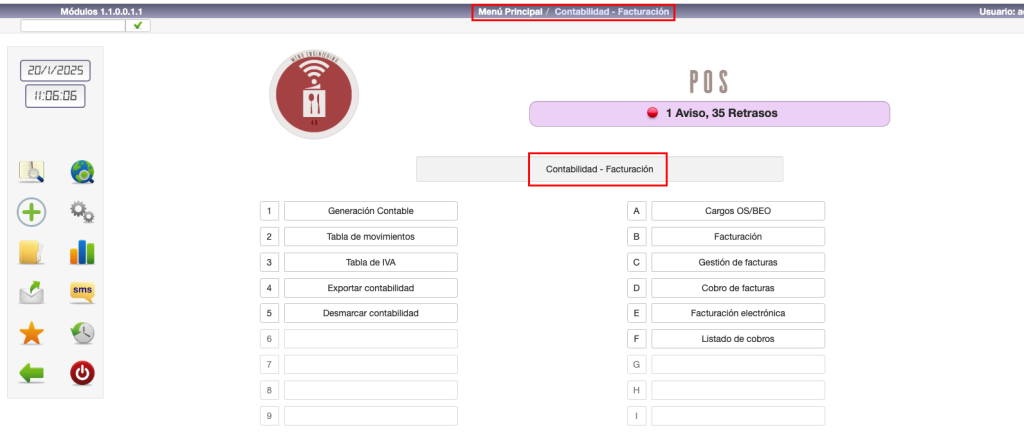• Los cargos de la factura no se pueden modificar/anular si tienen fecha anterior a la fecha activa.