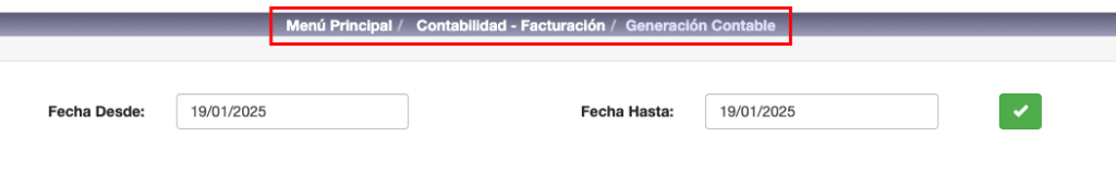 Se debe hacer la opción C.1. Generación Contable. Esta opción lo que hace es la que genera realmente los movimientos contables entre la fechas que les indiquemos. Si lo hacemos diariamente el sistema siempre nos propone el día anterior, pero en el caso de que haya un fin de semana, simplemente cambiaríamos la fecha desde. Por seguridad hay que pulsar el Ok, con el ratón. Si hacemos 2 veces el mismo día o las mismas fechas, no pasa nada, ya que el sistema recuerda que se ha hecho para dichas fechas el enlace contable.
