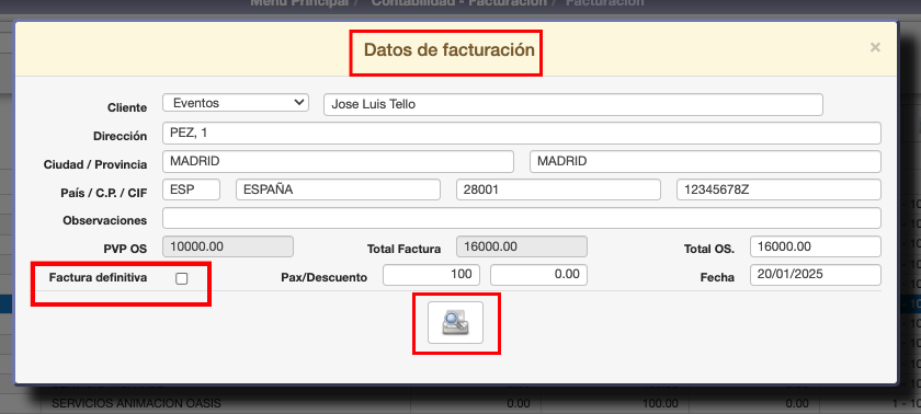 Factura Definitiva: Convierte la factura en definitiva generándola. Si no se marca, se tendría una factura pro-forma.