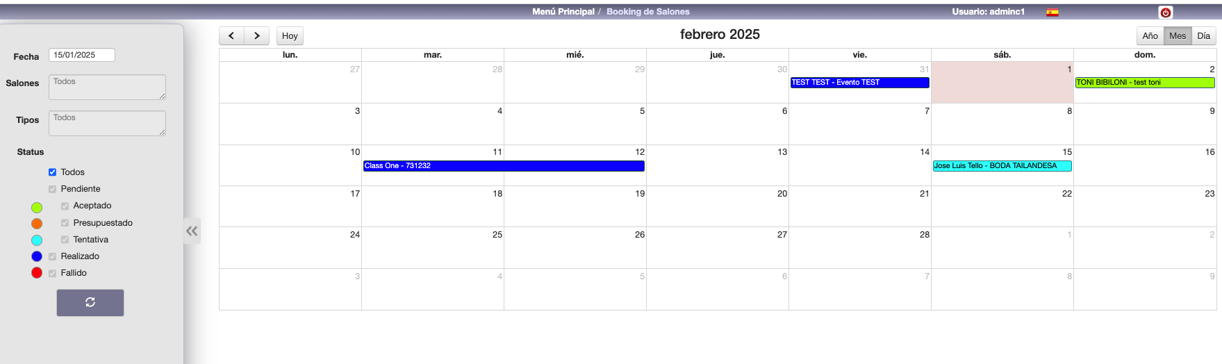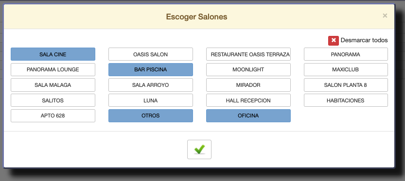 Salones: Filtra por Salones que se seleccionen en el popup.