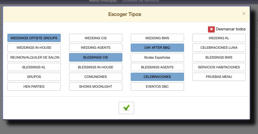 Tipos: Filtra por los tipos de OSque se seleccionen en el popup.