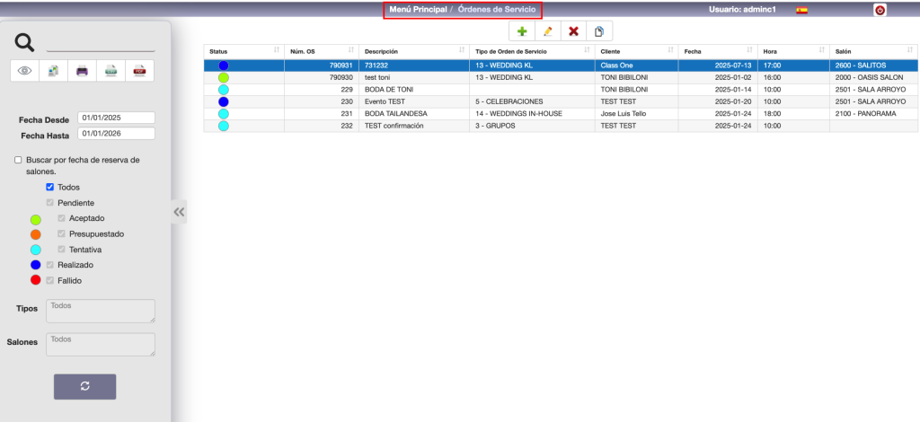Los filtros disponibles permiten obtener listados de OS según se desee.