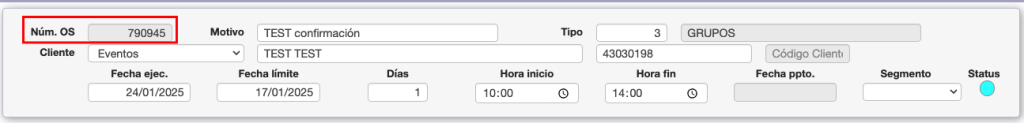 Otros datos importantes de cada OS son la Fecha de ejecución, Fecha límite, cuántos Días de desarrollo y las Horas de Inicio y Fin. También es posible Segmentar los eventos para posteriores acciones de marketing.