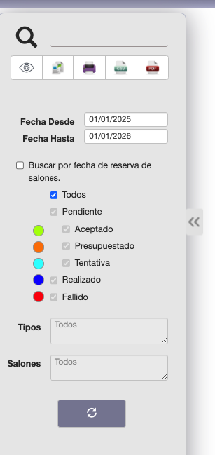 Buscar por fecha de reserva de salones: Ordena el informe por la fecha de ejecución.