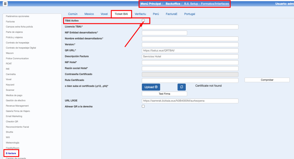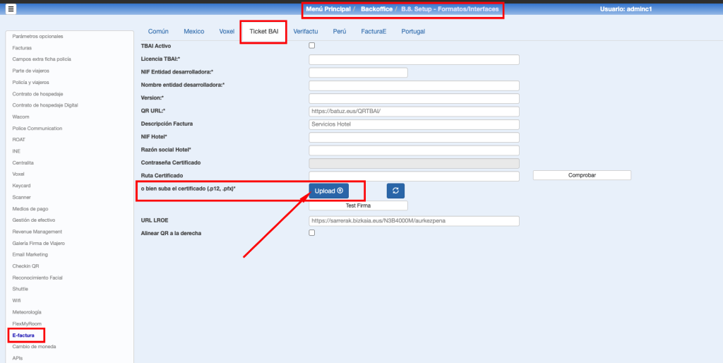 Esta conexión necesita el Certificado digital en vigor de la empresa titular. Es necesario que el hotel esté pendiente de la caducidad de SU certificado para que la integración funcione correctamente. En ningún caso es responsabilidad de Class One la gestión y mantenimiento de estos certificados.