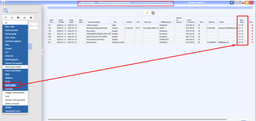 En la opción 7.3. Envío de partes de viajeros a policía visualizar la columna Núm. Orden desde el «Ojo».