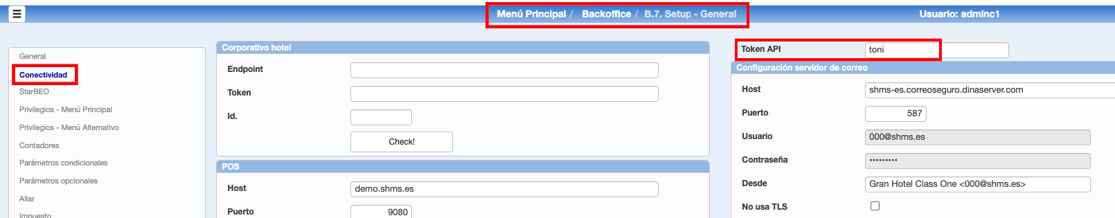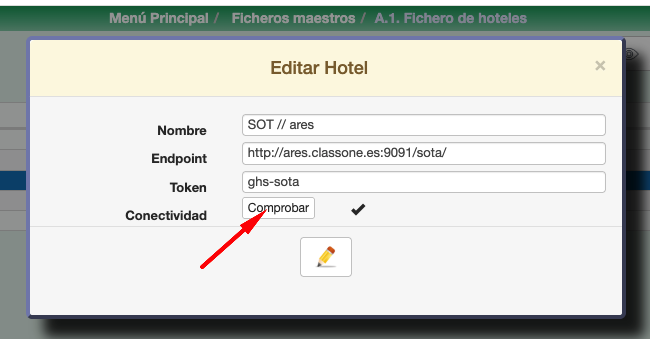 Conectividad: Pulsar el botón Comprobar para verificar la correcta conexión.