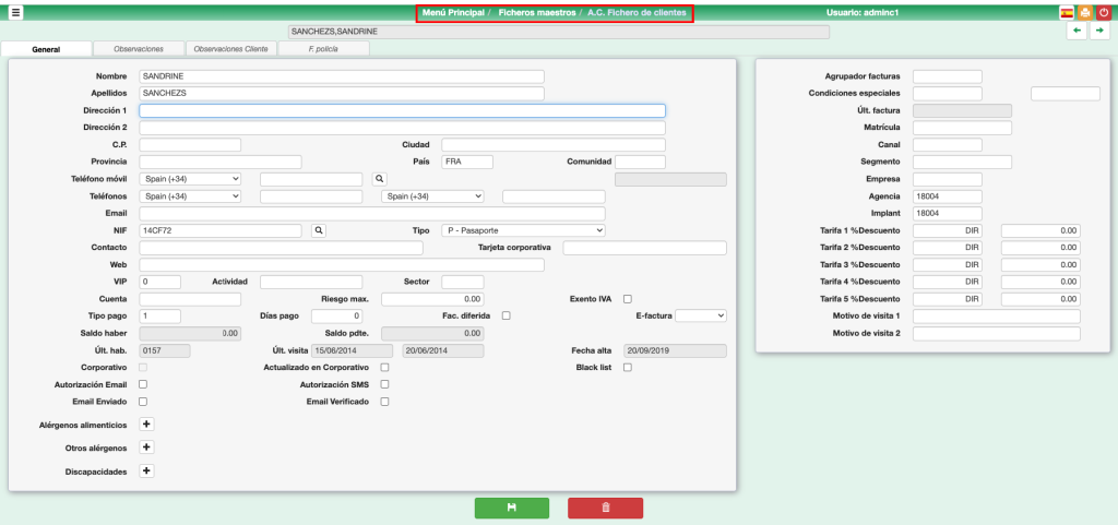 Cada hotel envía periódicamente su cardex al GHS (Según parámetro Enviar datos al GHS del B.7. Setup => Programador de tareas de cada Hotel). GHS, para cada cliente comprueba si ya existe por NIF y que el nombre sea «parecido». Si es así, entonces se ignora lo que se recibe de hotel. Si no se encuentra ese cliente, se guarda en el cardex de GHS.