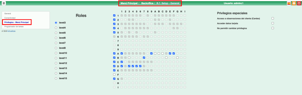 Privilegios - Menú principal