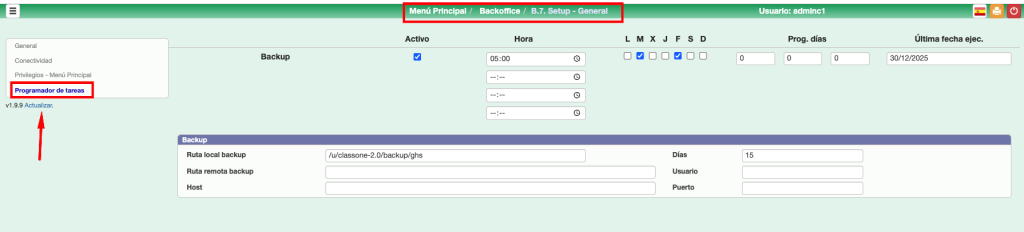 (08) Tiempo de desconexión (min): Para el exhaustivo complimiento de la RGPD. Pasado el tiempo de desconexión nos solicita usuario y contraseña de nuevo.