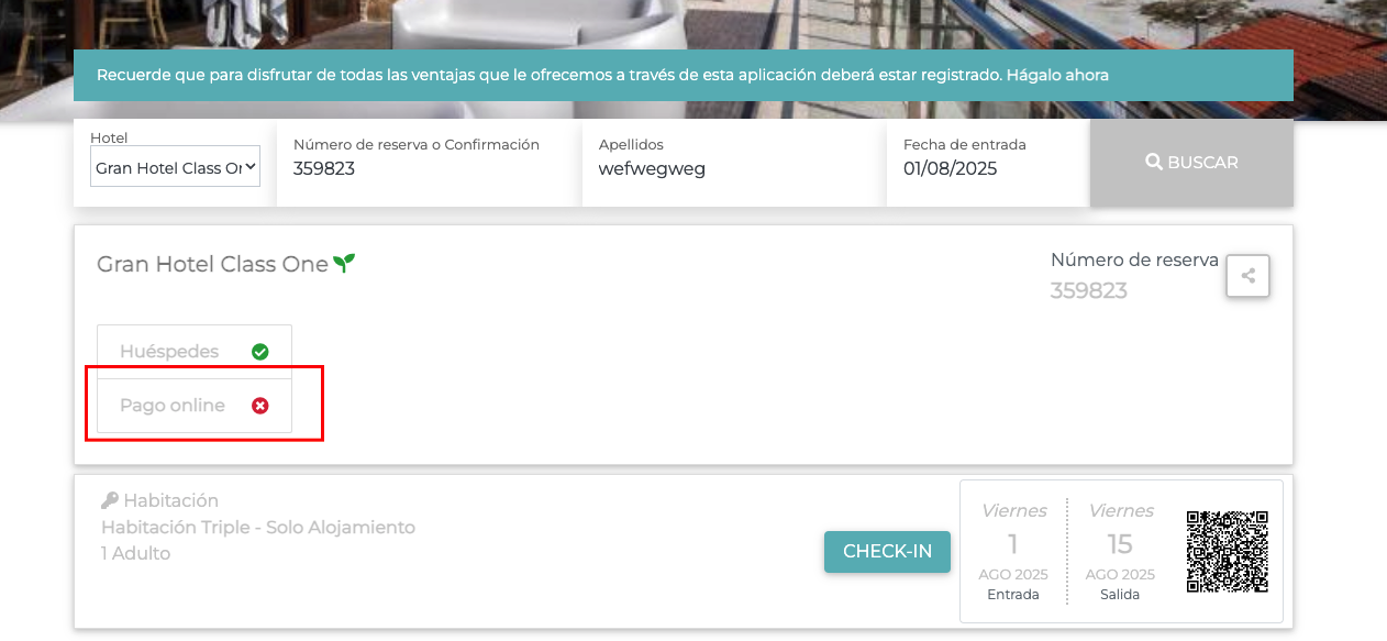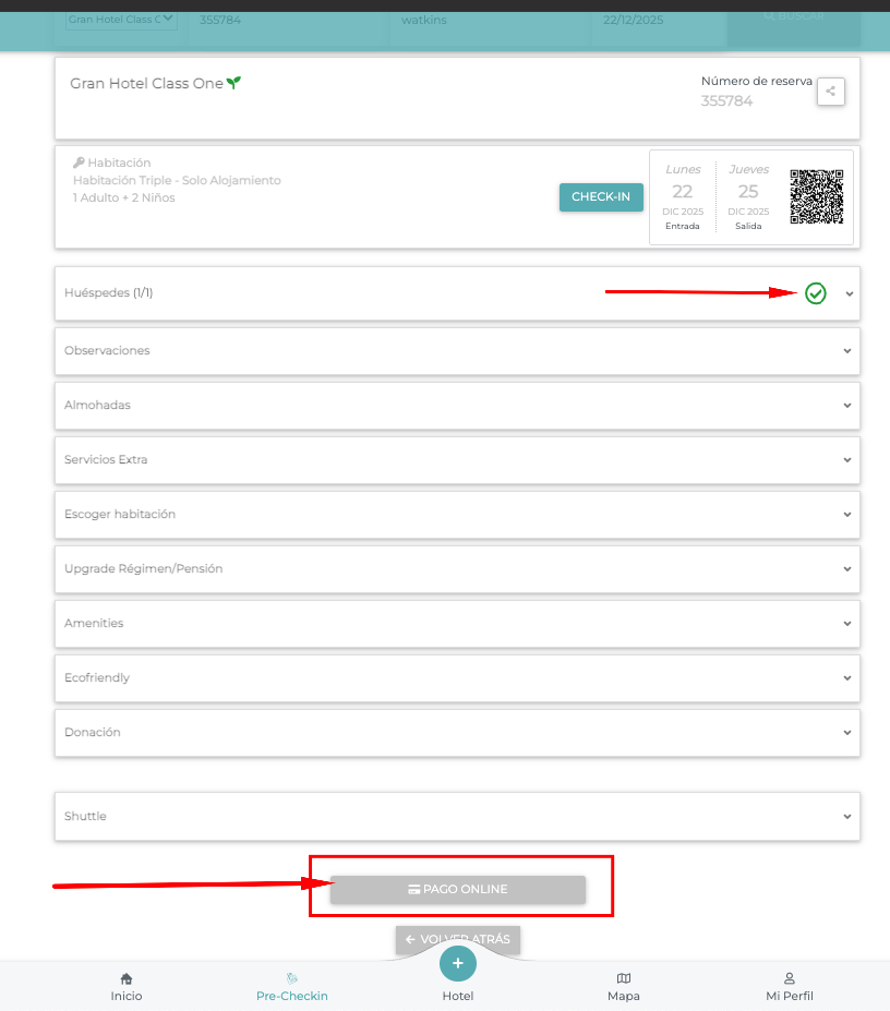 - Marcado, no será obligatorio tener la reserva pre-pagada para hacer checkin.