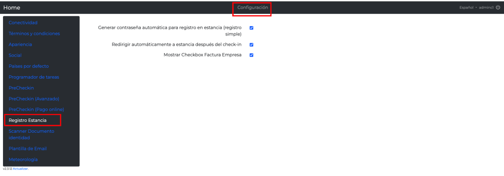 Desde aquí podemos definir la manera en la que el cliente puede hacer su pre-checkin.