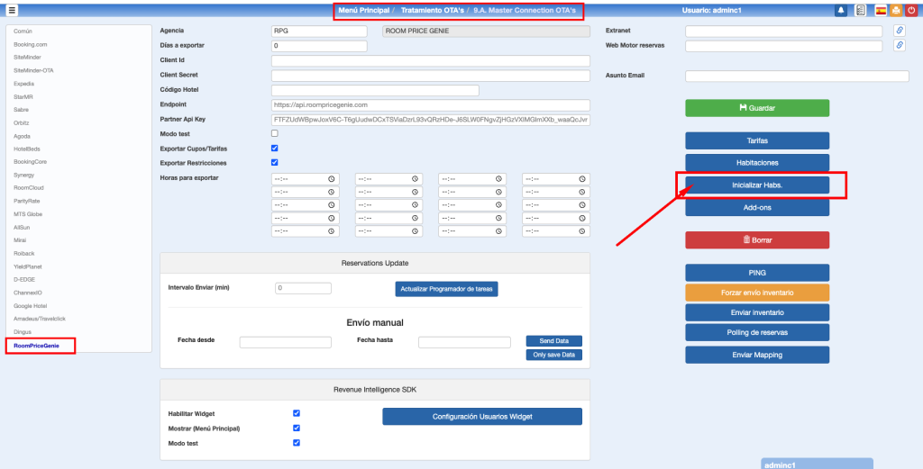 - Código del hotel (property code).: Este dato lo facilita RoomPriceGenie.