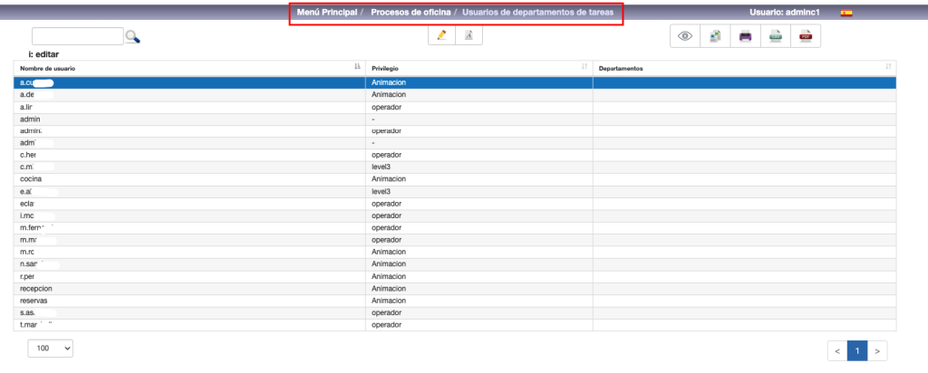 En el apartado B.A.Configuración de usuarios de tareas, debemos asociar a cada usuario a los departamentos que le afectan en el Gestor de tareas, de manera que solo recibirá los mensajes vinculados a estos departamentos.