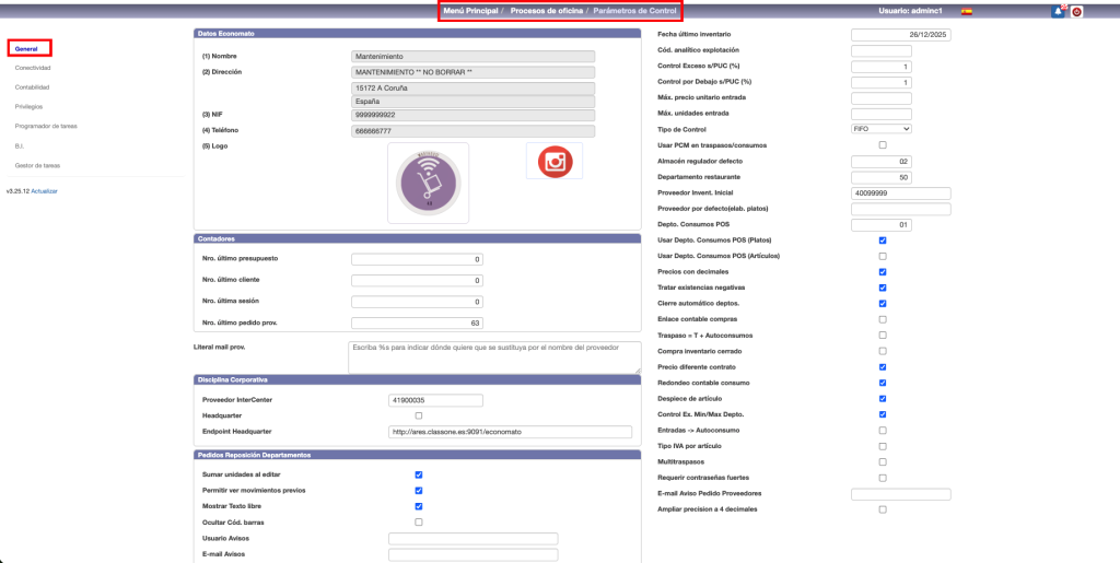 - Redondeo contable consumo: Para el encadenamiento contable con ALLAR, si los consumos va a llevar o no decimales.