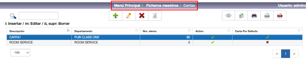 Se puede tener una carta por defecto para cada departamento, que se cargará automáticamente al abrir la pantalla de bar.