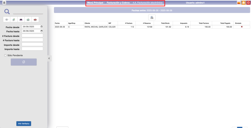 Para modificar o eliminar el total del importe de un anticipo, desde la reserva, hacer clic en el botón Anticipo e introducir el importe en negativo (o positivo, según el caso). Esto generará una nueva factura por importe negativo y modificará el importe del anticipo de la reserva.