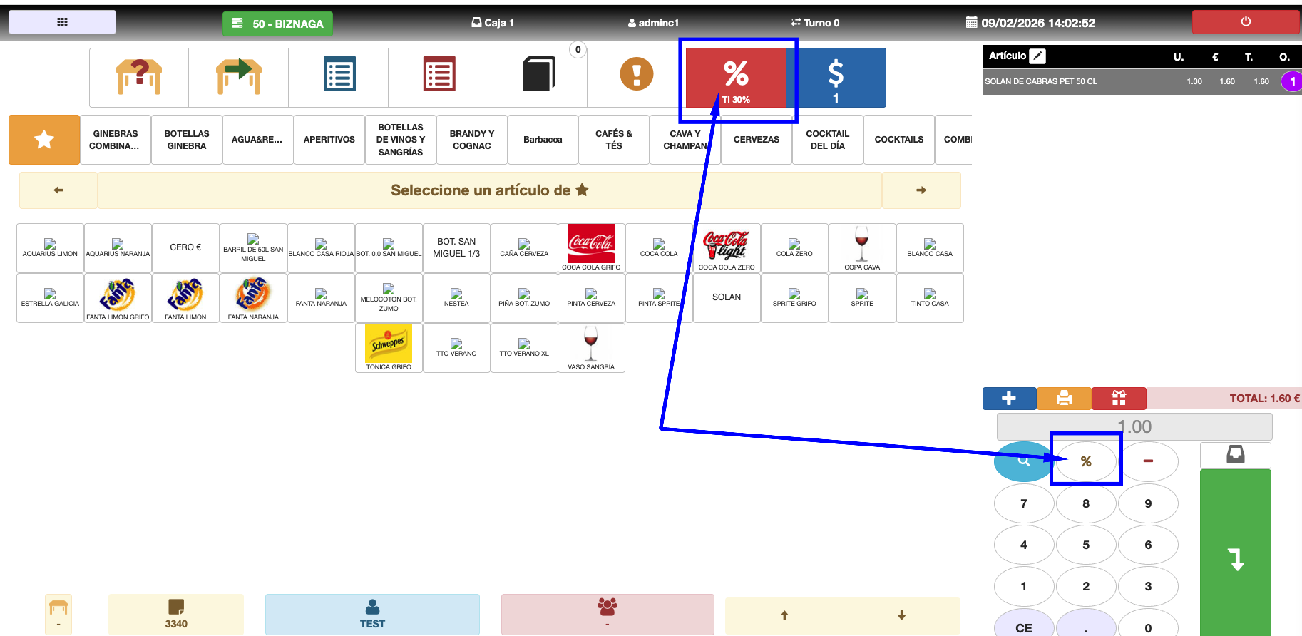 - Porcentaje: % de descuento a aplicar en el ticket.