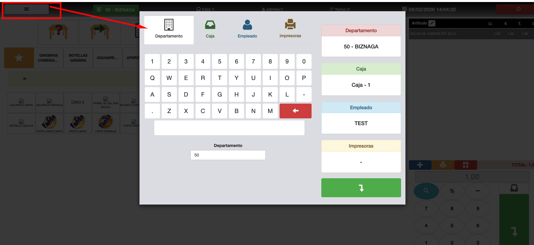 - Fecha distinta a la actual: Permite al usuario cambiar de fecha eligiendo entre las opciones propuestas en el popup. Esto ocurre cuando la fecha del sistema no coincide con la fecha de la aplicación, por ejemplo, al hacer una Z y volver a abrir el departamento.