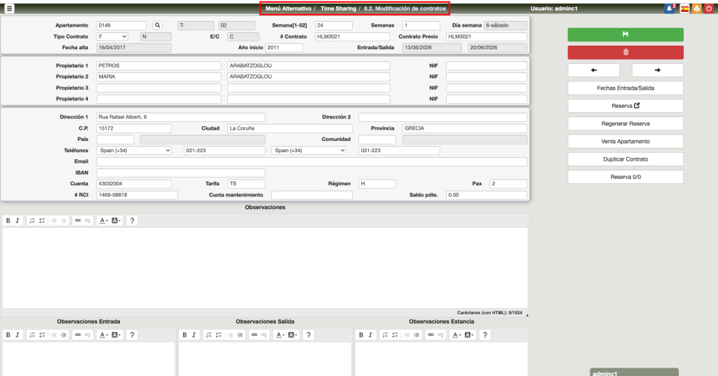Hay que tener en cuenta que un contrato puede tener varias reservas, por ejemplo, en años diferentes o un contrato de cuatro semanas tenerlas separadas, no consecutivas.
