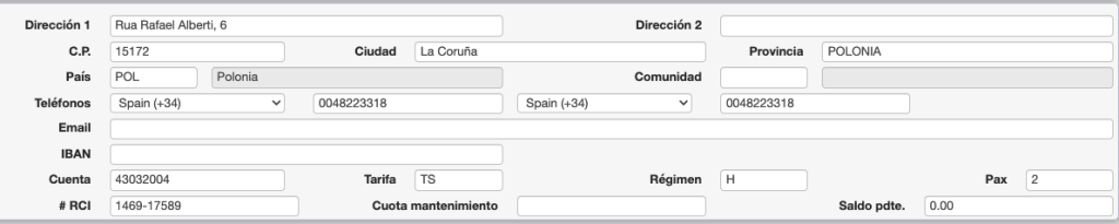 En este bloque se indican los datos de contacto y los bancarios del contrato.