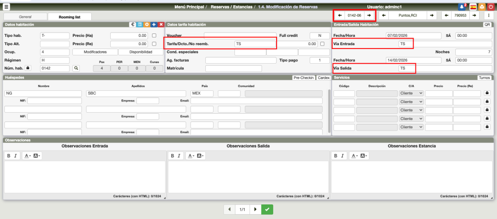 Aunque el tratamiento de las reservas es idéntico a las reservas normales de hotel, hay ciertos elementos diferenciadores que las identifican.