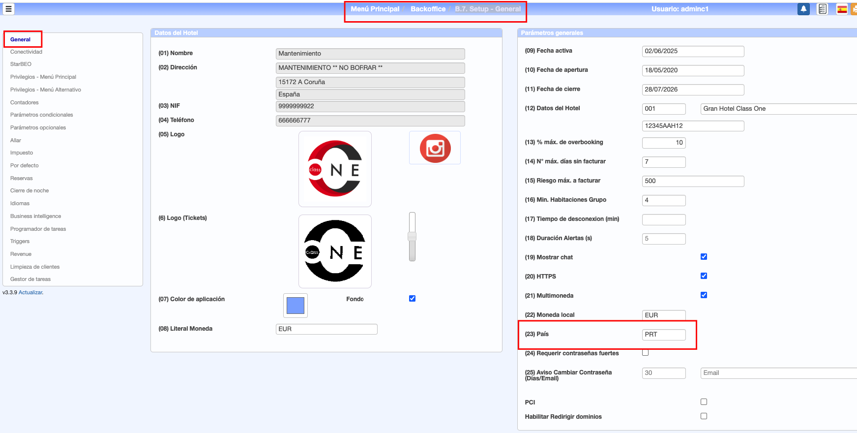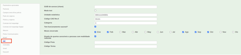 En la opción B.8. Setup – Formatos/Interfaces =>INE, si se tiene el país configurado en el B.7. Setup – General como Portugal, nos aparecerá la siguiente información: