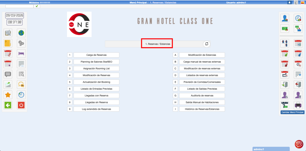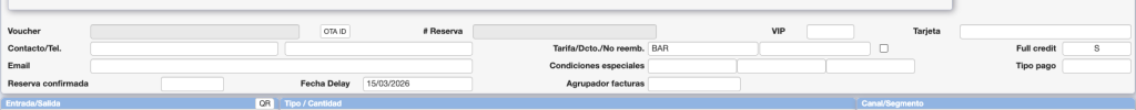 Reserva Confirmada. Admite los valores (S/N) y valores (1-9 Se pueden tipificar las Reservas). En el caso de Reservas no Confirmadas poseemos un listado en la opción 6.E. Listado de caducidad de reservas donde nos indica aquellas que están «No confirmadas«.