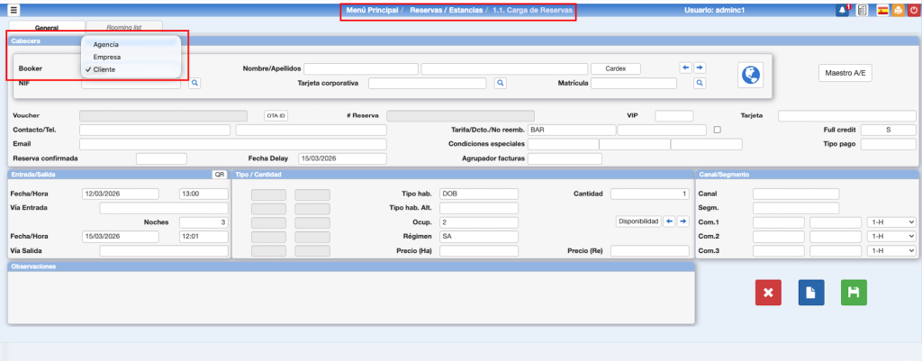 General o Booker: Quien hace la reserva y sus datos. También es el titular de la factura final.