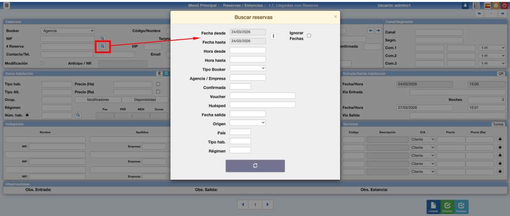Desde este mismo apartado podemos seleccionar la reserva a entrar (o modificarla).