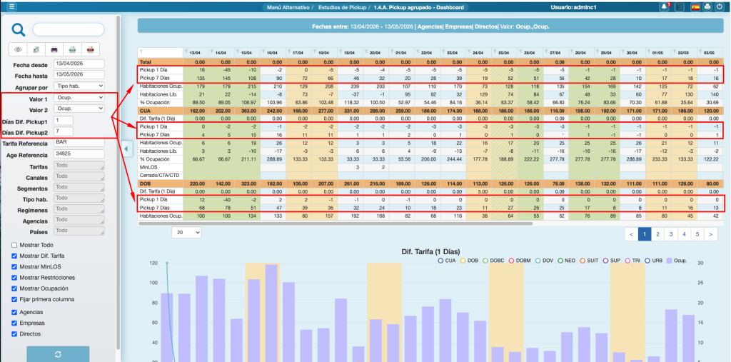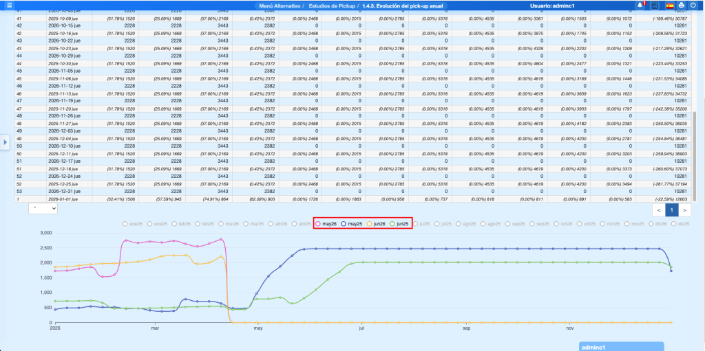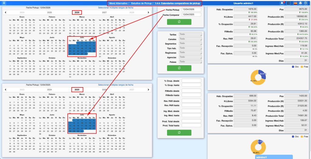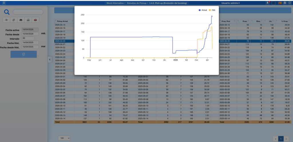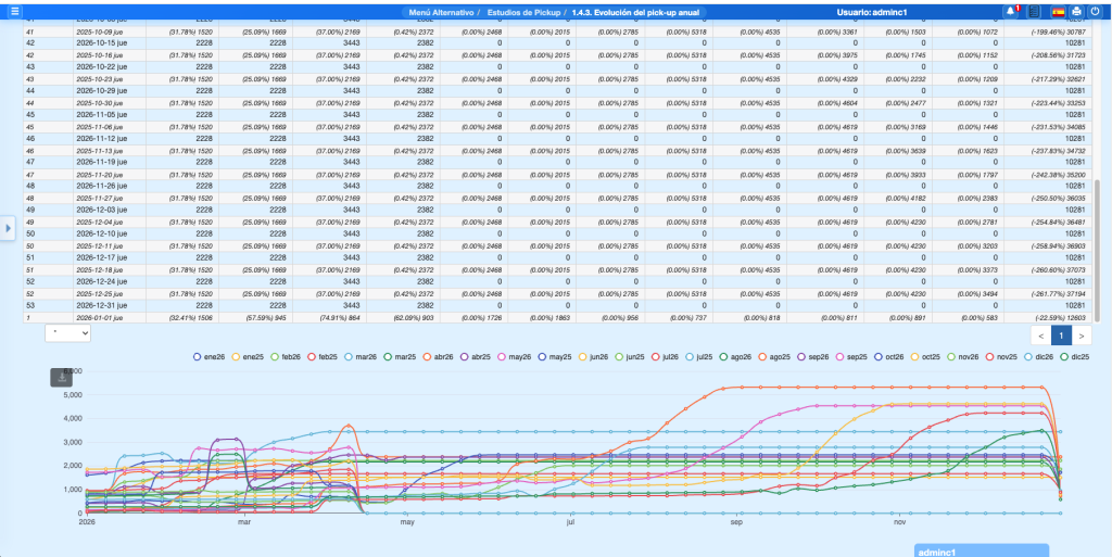Realizar un estudio de pickup sobre estancias implica analizar la evolución de las noches o estancias confirmadas (es decir, el inventario de noches de habitación o Room-nights) para un período futuro, en comparación con un período similar del año anterior. A diferencia de contar sólo el número de reservas, en este caso se consideran otros parámetros que reflejan la duración y el aprovechamiento de la ocupación.