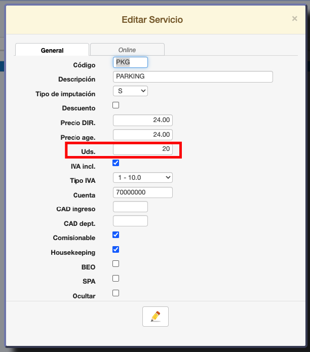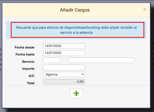 Con esta opción podemos cargar servicios extra que los clientes nos demandan una vez están alojados y que no están contratados previamente.