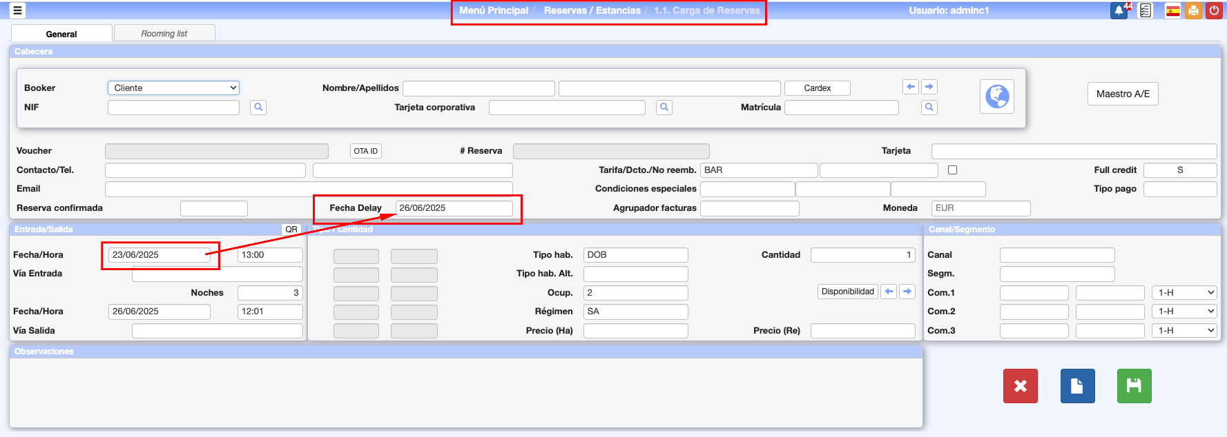 (03) Número de días Reserva Tentativa. El valor que se introduzca en este apartado especifica el valor por defecto del campo Fecha Delay a la hora de hacer una reserva. Mostrará una fecha anterior a la fecha de checkin con la diferencia de días marcados en este campo.